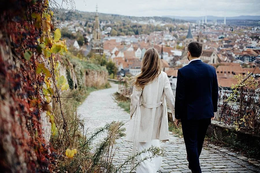 Die Esslinger Weinberge sind vor allem im Spätsommer der absolute Knaller für eure Paarfotos! Und das Beste daran? In nur 5 Minuten seid ihr vom Marktplatz in den Weinbergen – perfekt für unvergessliche Erinnerungen!